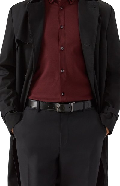 Ремень с тренчиком в тон выполнили из гладкой кожи. Аксессуар стандартной ширины застегивается квадратной пряжкой с выгравированным логотипом.