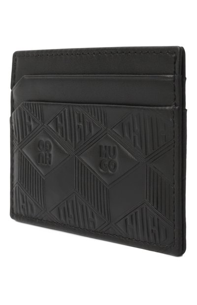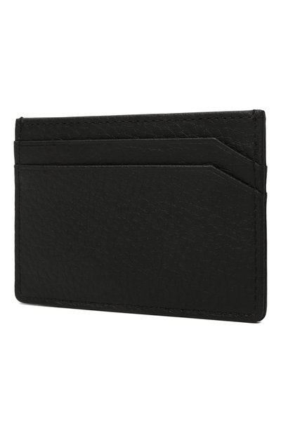 Картхолдер с крупным логотипом спереди выполнили из мелкозернистой козьей кожи. Аксессуар с четырьмя попарно расположенными слотами для карт дополнили центральным карманом для чеков.