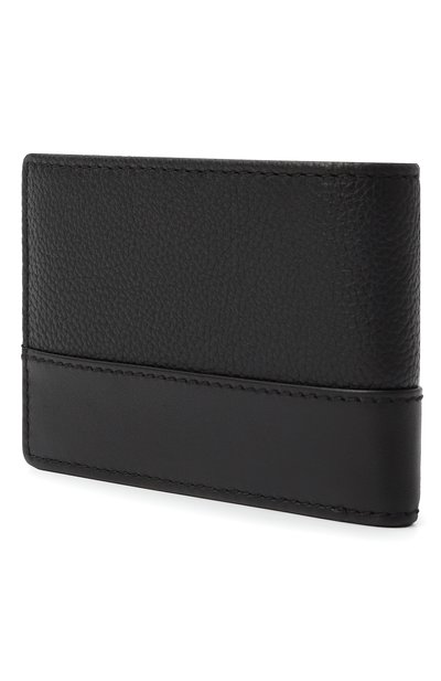 Портмоне с восемью карточными слотами и отделениями для чеков и купюр выполнили из зернистой кожи. Аксессуар украсили тисненым логотипом спереди.