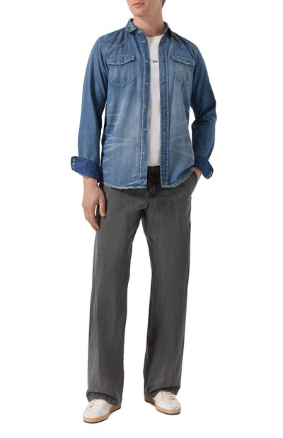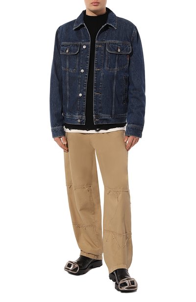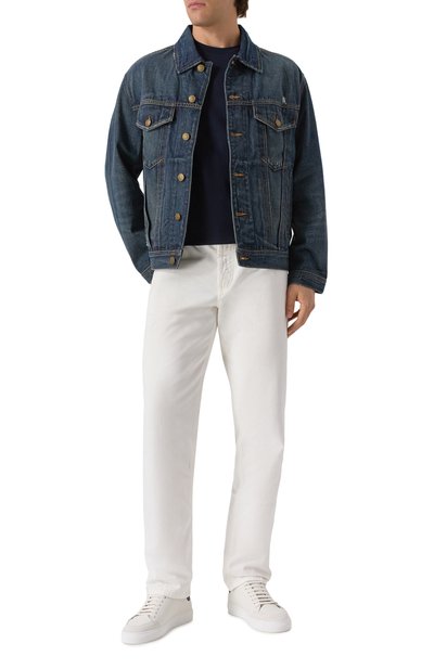 Куртку Chian на молнии выполнили из денима. Немного выбеленную модель, декорированную патчем с логотипом, дополнили двумя большими накладными карманами с необработанными краями.