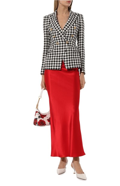 Юбка Vesatie3 с цельнокроеным поясом застегивается потайной молнией сбоку. Для изготовления модели использовали атлас из вискозы, полученной из древесины возобновляемых лесов.