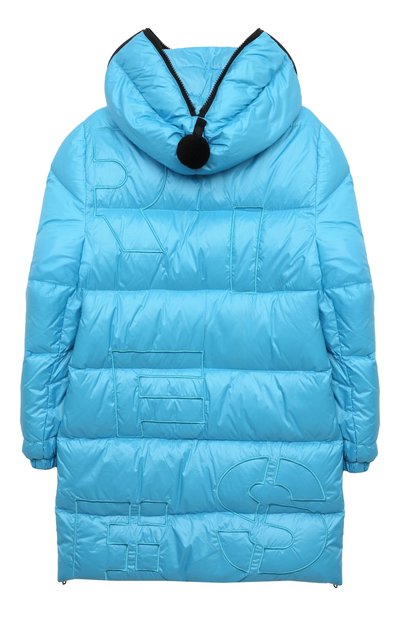 Стеганое пальто на синтетическом утеплителе выполнили из нейлона. Модель со съемным капюшоном, накладными карманами с клапанами на кнопках и молнией под планкой декорировали патчем с числовым кодом спереди и фирменной строчкой на спинке.