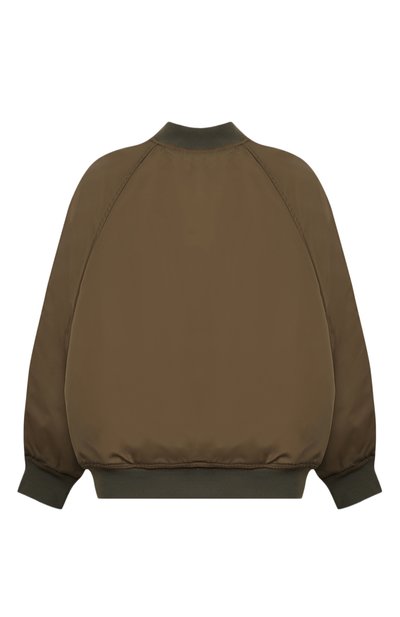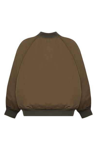 Утепленный бомбер с воротником-стойкой, манжетами и поясом из эластичного трикотажа в рубчик выполнили из нейлона. Модель с двумя карманами украсили сзади логотипом бренда, вышитым в тон.