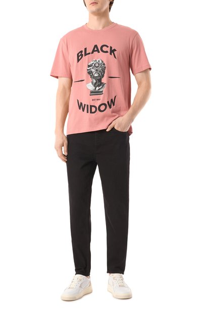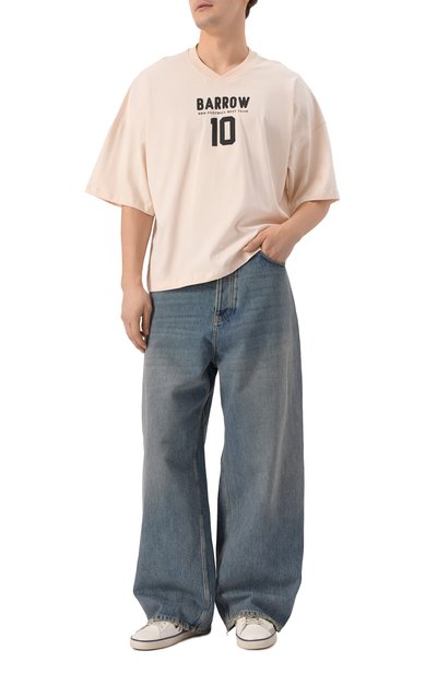 Для пошива футболки свободного кроя использовали хлопковое джерси. Эластичную модель с круглой горловиной украсили крупным логотипом марки спереди.