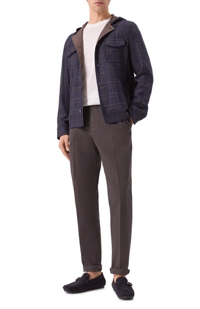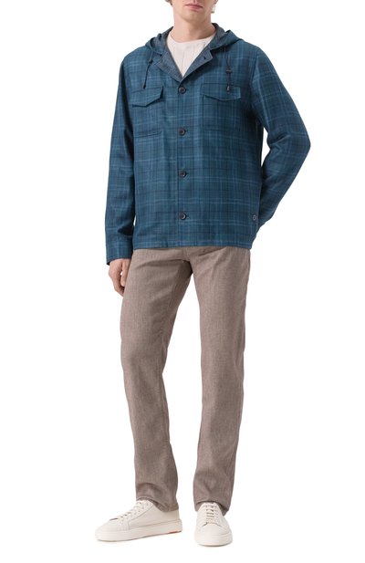 Куртку-рубашку из полиамида украсили сплошным принтом Toute la V. Помимо боковых карманов предусмотрели еще один нагрудный. Модель на подкладе из полиэстера застегивается золотистыми пуговицами с фирменной литерой V.