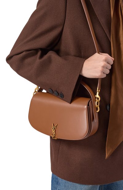 Сумку Vain с подкладкой из наппы и внутренним карточным слотом выполнили из гладкой телячьей кожи. Клапан с магнитной кнопкой украсили металлической эмблемой VLogo Signature. В комплекте — комбинированные короткая ручка и плечевой ремень.
