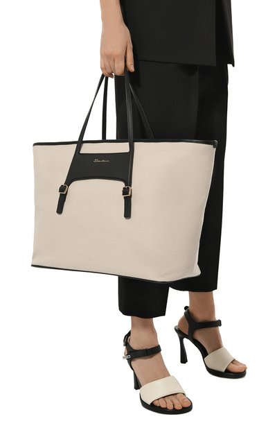 Сумку-тоут Atene из текстиля украсили принтом Majolica. Дно и верх укрепили мелкозернистой кожей, выполнив из такого же материала длинные ручки, дорожную бирку и косметичку. Аксессуар застегивается тремя кнопками с монограммами DG.
