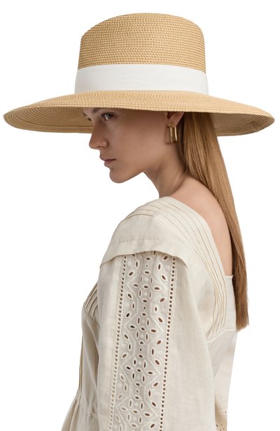Для изготовления шляпы использовали габардин из чистого хлопка. Аксессуар декорировали вышитой эмблемой на тулье спереди и логотипом на широких асимметричных полях, которые можно заверну ть наверх при помощи кнопок.