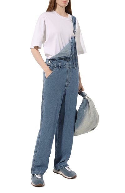 Для пошива облегающего комбинезона Travis с глубокими круглыми вырезами спереди и сзади использовали гладкое джерси из бамбукового волокна. Наши стилисты предлагают составить образ с жакетом и мюлями в тон.