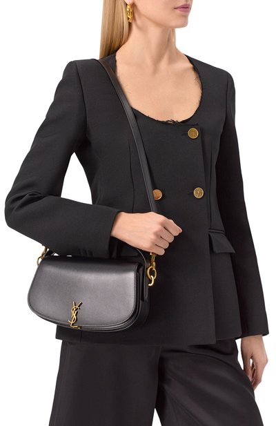 Для создания сумки Vain с длинной ручкой использовали гладкую телячью кожу. Внутри аксессуара предусмотрели два отделения, накладной карман на молнии и карточный слот. Клапан на магнитной кнопке украсили металлической эмблемой VLogo.