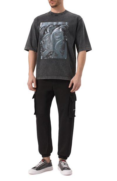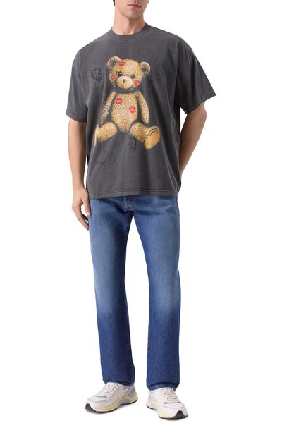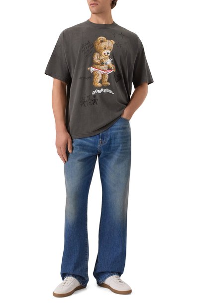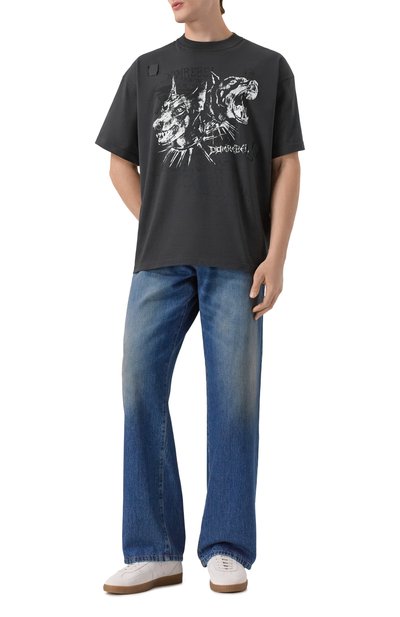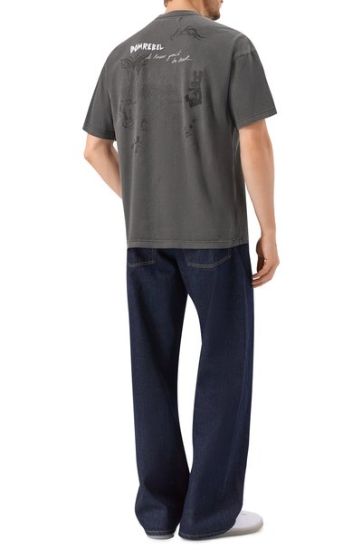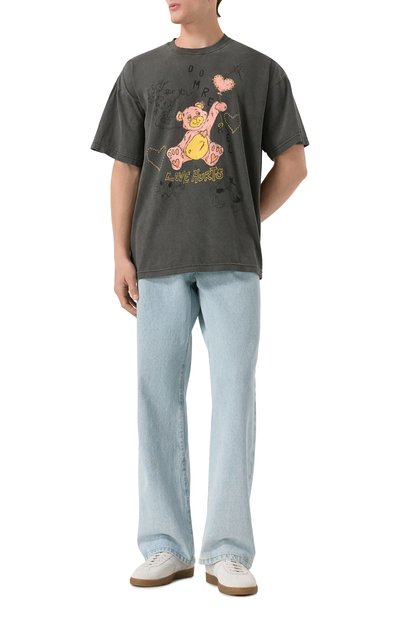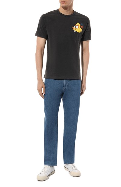 Футболка прямого кроя выполнена из хлопкового джерси. Спереди модель с круглой горловиной и спущенной линией плеч украсили логотипом и вариацией принта Britisch Sailor.
