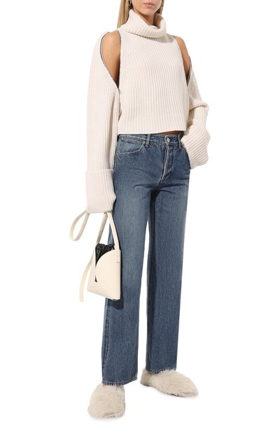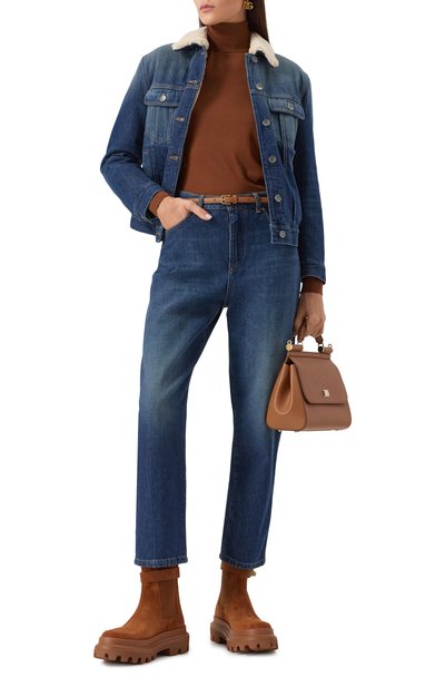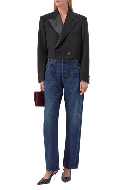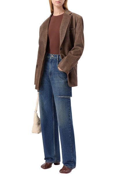 Джинсы Bonnie с пятью карманами выполнили из неэластичного денима. По краям модель прямого кроя декорировали небольшими потертостями.