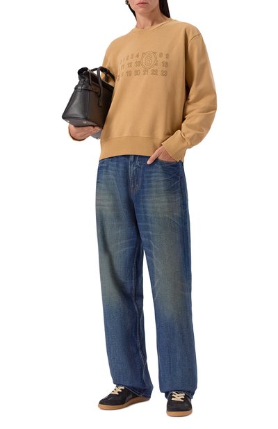 Джинсы Bonnie с пятью карманами выполнили из неэластичного денима. По краям модель прямого кроя декори ровали небольшими потертостями.