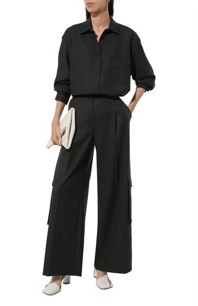 Рубашку в полоску сшили из эластичного шерстяного текстиля с добавлением вискозы. Модель с нагрудным прорезным карманом украсили брендированной нашивкой на спинке.