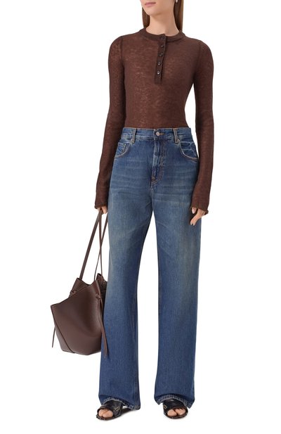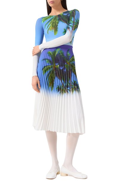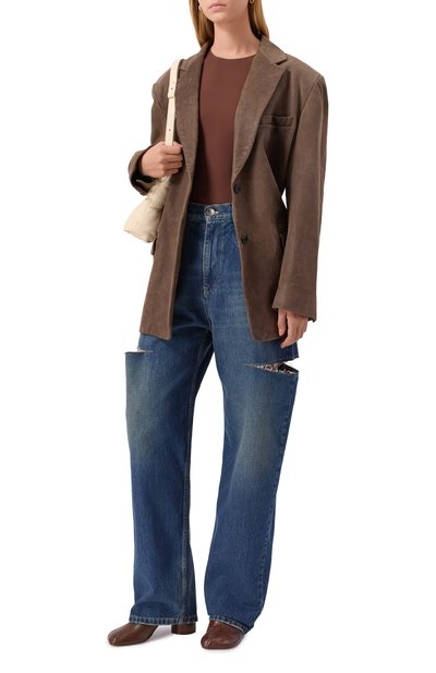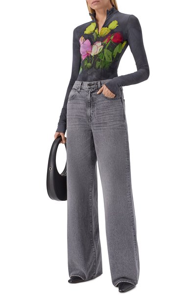 Боди с длинными рукавами и круглым вырезом выполнено из тонкого джерси с меховым принтом. Облегающая модель с фирменными стежками сзади застегивается кнопками снизу.