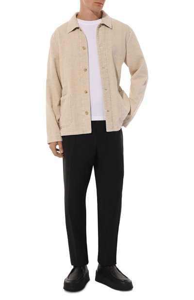 Ботинки Moccar из нубука окрасили и отполировали до глянцевого блеска вручную. Форму мыса модели на литой каучуковой подошве подчеркнули рельефным швом.