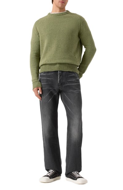 Выбеленные джинсы Mark силуэта Regular fit, сшитые из жесткого денима, декорировали потертостями. Принадлежность модели с пятью карманами марке обозначили брендированным патчем на поясе сзади. В комплекте — брелок-цепочка.