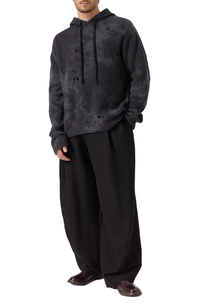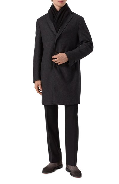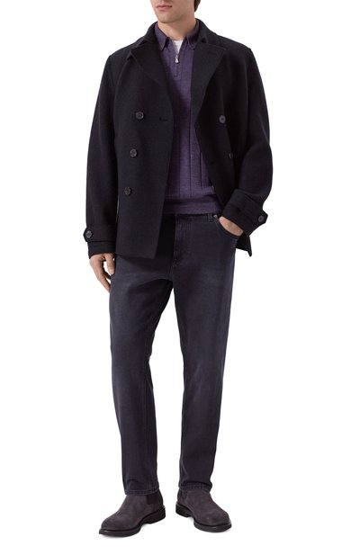 Замшевые челси вручную обработали щетками, чтобы придать состаренный вид. Модель с эластичными текстильными вставками по бокам и петлей на заднике поставили на широкую протекторную подошву.