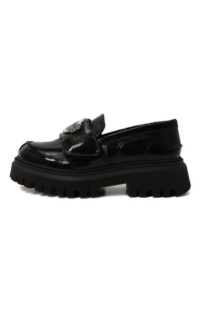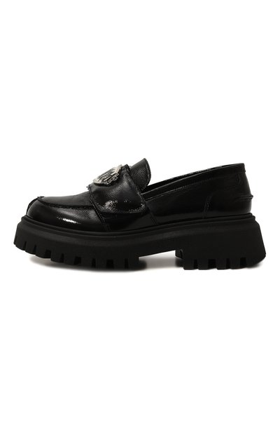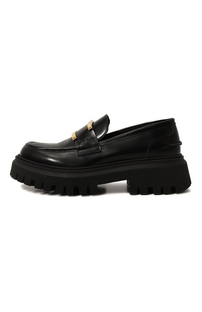 Лоферы с рельефным швом, подчеркивающим форму мыса, выполнили из отполированной кожи. Модель на массивной протекторной подошве украсили килтом с бахромой и фирменной пряжкой на союзке.