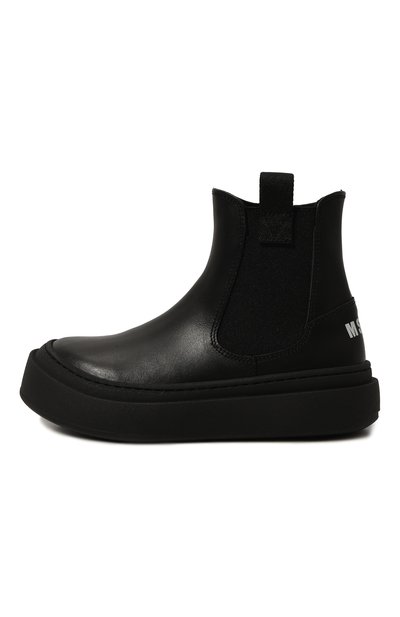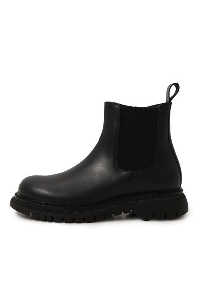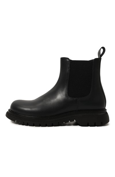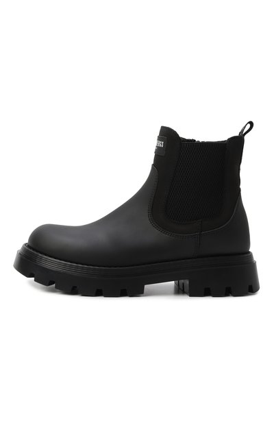Челси с протекторной подошвой сшили из комбинации матового полимера и кожи. Задник дополнили брендированной петлей. Ботинки с эластичным голенищем застегиваются молнией сбоку.