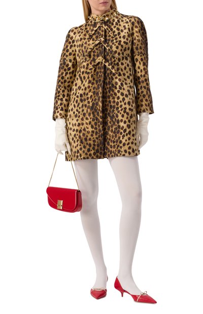 Фирменная пряжка Gancio узнается в вырезе босоножек с широким устойчивым каблуком, а хайтопы из плотного трикотажа вдохновлены туфлями-носками Indiana, придуманными Феррагамо в 1925 году.