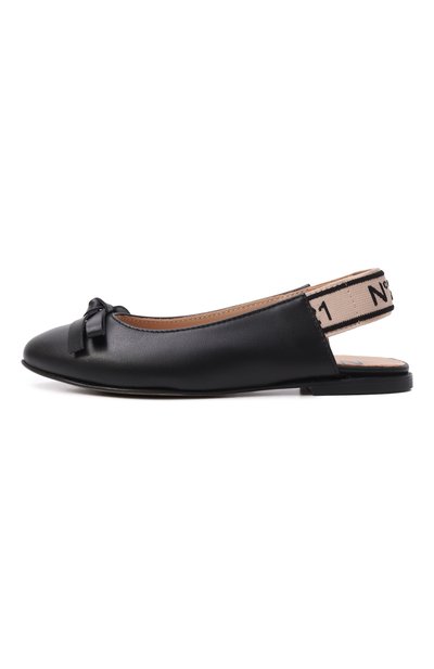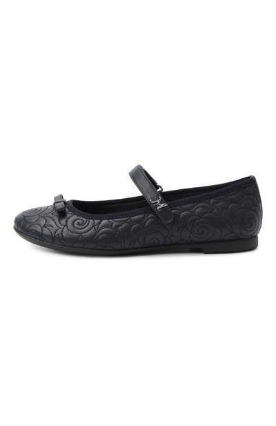 Туфли на широкой подошве с протектором выполнили из гладкой кожи. Модель, декорированную серебристыми заклепками, дополнили регулируемым ремешком с пряжкой.