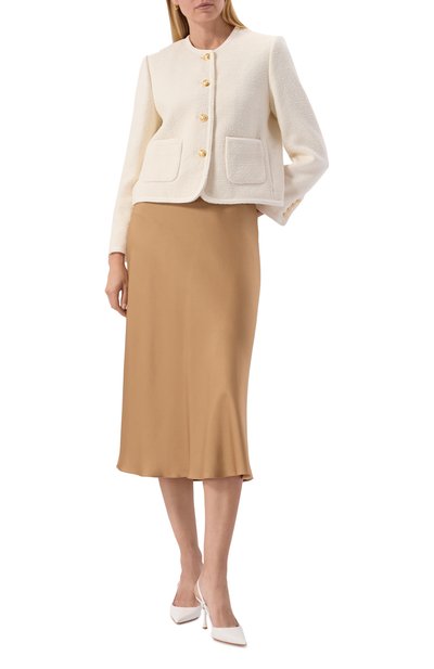 Миди-юбка А-силуэта удачно дополнит и повседневный образ, и наряд для вечернего выхода. Для изготовления модели с мягкими складками на подоле использовали шелковый атлас стрейч.