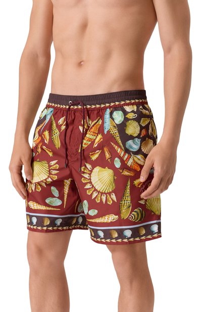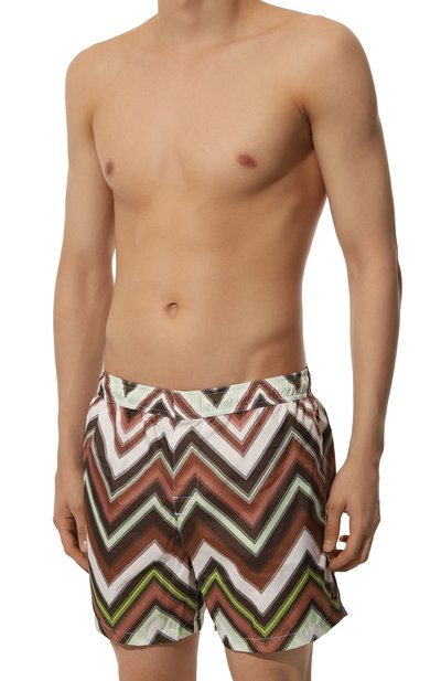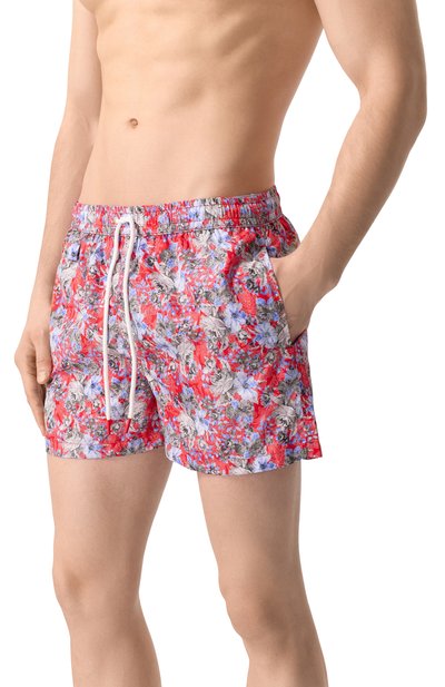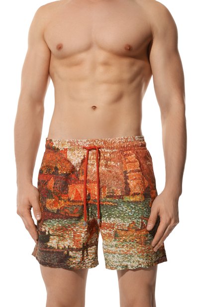 Плавки-шорты с внутренними брифами из нейлона стрейч выполнили из полиэстера с принтом Majolica. Посадку модели с брендированной нашивкой на заднем кармане можно регулировать шнуром, продетым в эластичный пояс-кулиску.