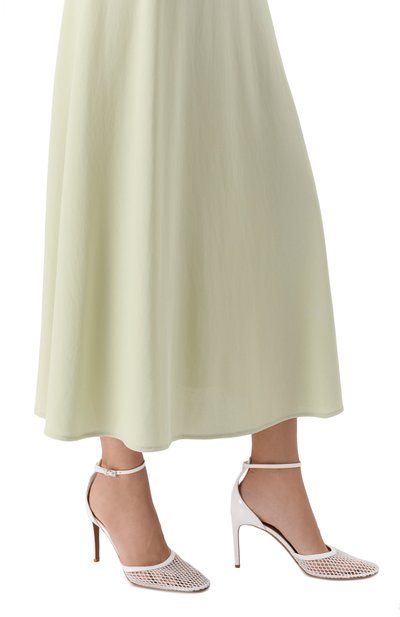 Слингбэки Galaxy с кожаной внутренней отделкой и эластичной вставкой на ремешке выполнили из блестящего бархата. Драпированную союзку туфель на шпильке декорировали крупной кристальной пряжкой.
