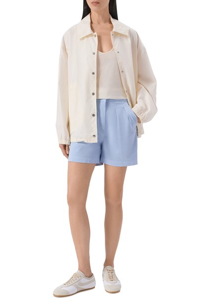 Шорты из трикотажа на основе хлопка и полиэстера украсили контрастным принтом Varsity Crest. Помимо боковых карманов у модели с эластичным поясом предусмотрели накладной задний.