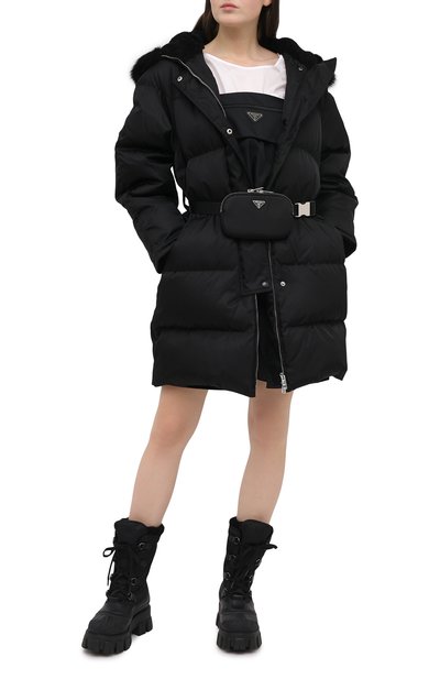 Стеганый пуховик с отложным воротником и съемным капюшоном сшили из влагоотталкивающей тафты на основе полиэстера и хлопка. Утепленное материалом Thermore® пальто на гусином пуху дополнили эластичными манжетами, кулиской по низу, врезными нагрудными и накладными боковыми карманами. Под штормовой планкой на кнопках скрыли встречную мол нию с цепочкой мониль на верхнем пуллере.