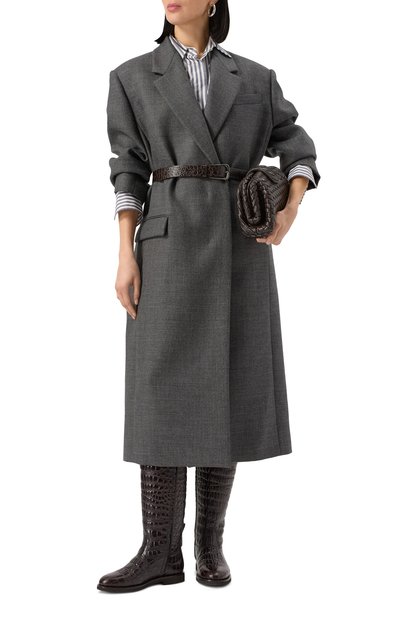 Замшевые полусапоги на широкой протекторной подошве утеплили ширлингом. Модель дополнили ремешком с пряжкой, украшенной фирменной цепочкой мониль.