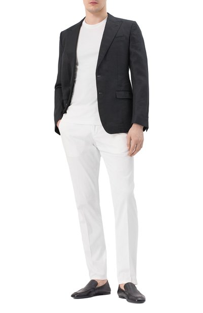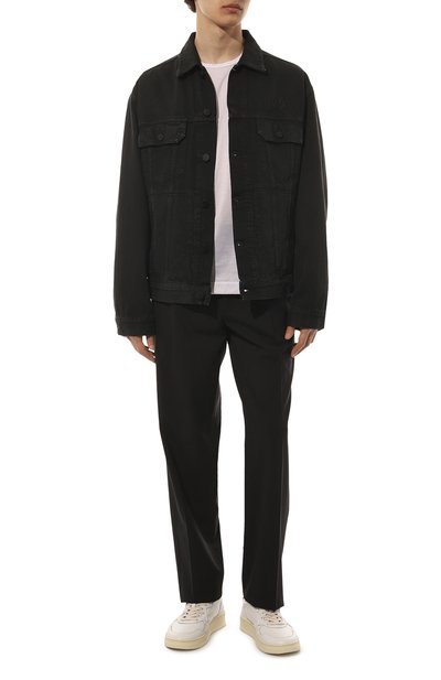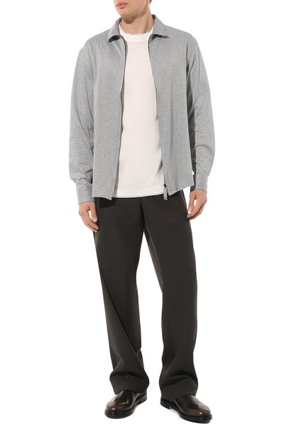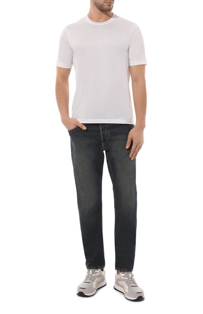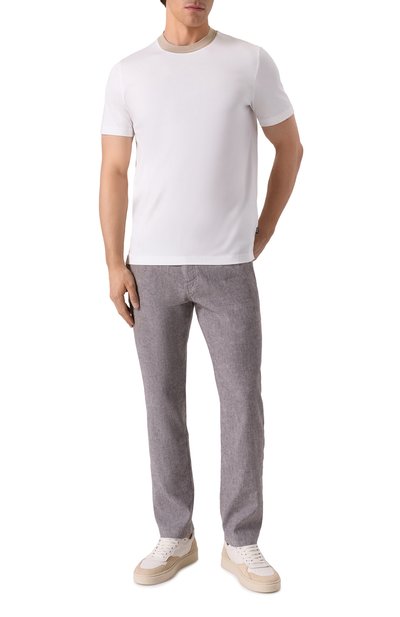 Для изготовления модели с круглой горловиной в рубчик использовали джерси из чистого хлопка. Футболка прямого кроя с короткими разрезами по бокам гармонично дополнит базовый гардероб.