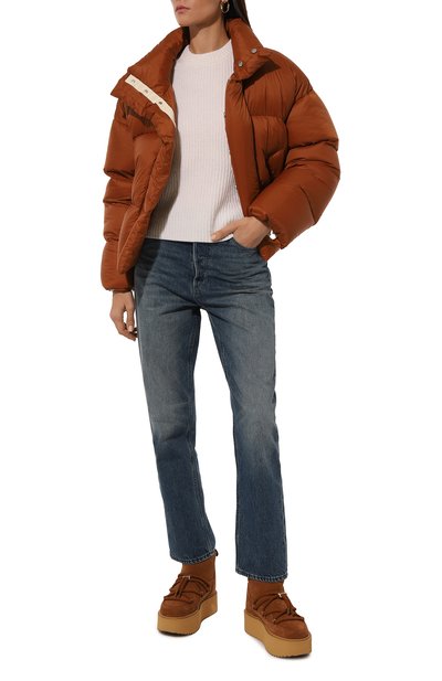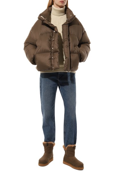 Полусапоги Classic с отделкой из гладкой кожи выполнили из двухсторонней овчины с лицевой стороной под замшу и пушистой изнанкой. Модель с вышитым на заднике логотипом установили на резиновую подошву с зубчатым протектором.