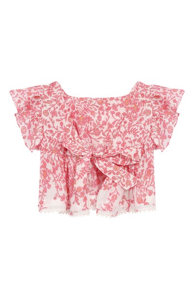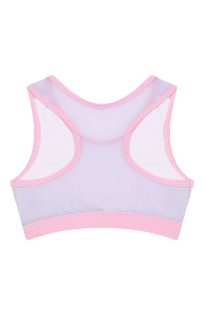 Топ с цветочным принтом спереди и градиентным сзади сшили из быстросохнущего материала. Модель с круглым вырезом, Y-образной спинкой и глубокими проймами дополнили подкладом из джерси.