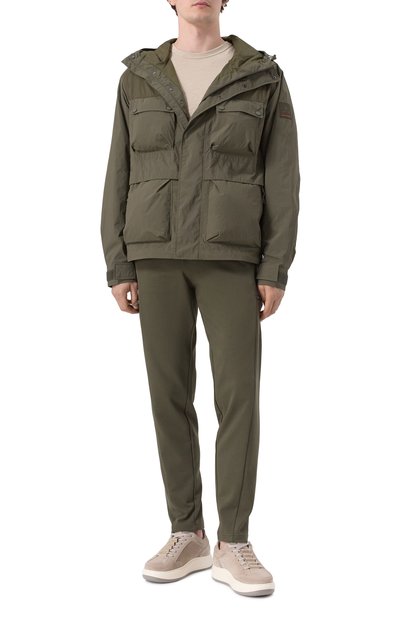 Брюки Sanderson-L-2 выполнили из ткани стрейч на основе хлопка и лиоцелла. Модель с эластичным поясом и четырьмя карманами украсили брендированной нашивкой сзади.