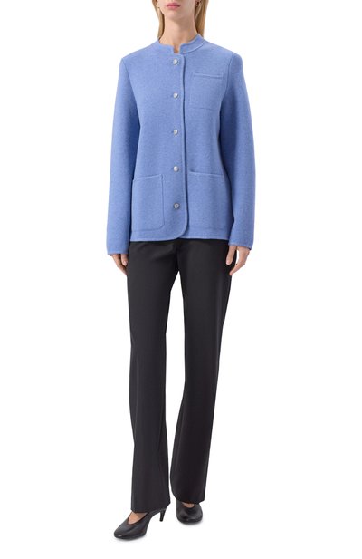 Кардиган в фактурную вертикальную полоску связали из микса льна и хлопка. Модель с отложным воротником, эластичными манжетами и поясом застегивается пуговицами в тон.