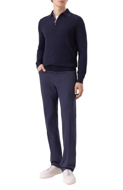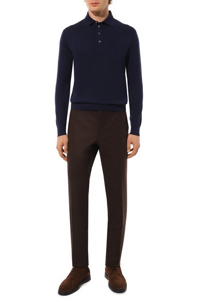 Поло с отделкой в рубчик сшили из кашемирового трикотажа. Модель с тремя пуговицами в тон одинаково комфортно носить и на голое тело, и поверх футболки.