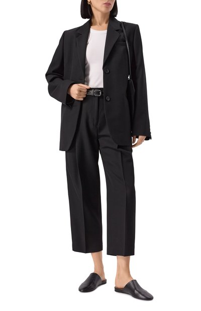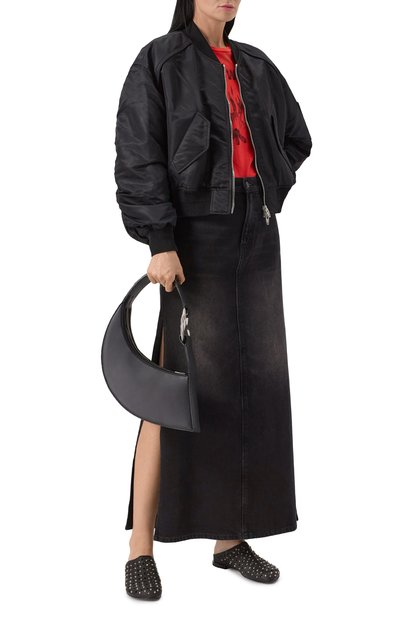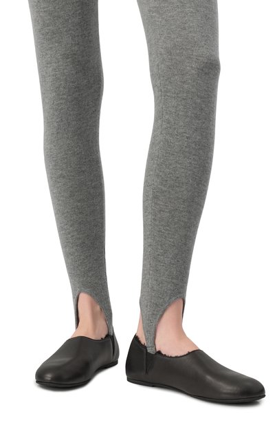 Утепленные овчиной сабо на широкой подошве изготовили из зернистой телячьей кожи. Модель с металлическими заклепками украсили нашивкой с логотипом на стельке.