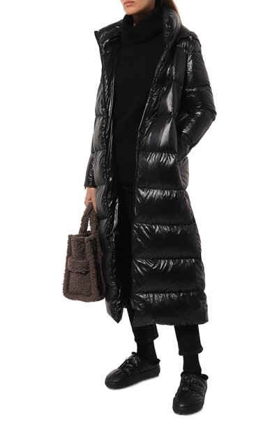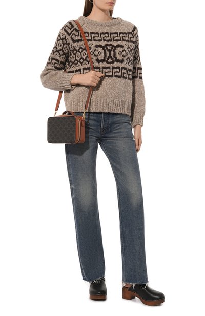 Утепленные овчиной сабо на широкой подошве изготовили из зернистой телячьей кожи. Модель с металлическими заклепками украсили нашивкой с логотипом на стельке.