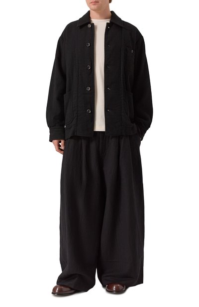 Брюки Paw с высокой посадкой сшили из микса льна и шерсти. Модель с широкими брючинами дополнили открытыми боковыми карманами и задними с клиновидными клапанами на пуговицах.