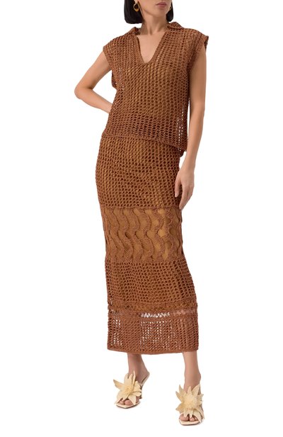| Параметры изделия для размера 38 Топ без рукавов. Обхват груди 85 см, длина изделия по спинке 57 см. |