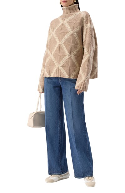 Кеды на тонкой резиновой подошве сшиты из комбинации матовой кожи и фактурной замши. Шнуровка подчеркнута зубчатым кантом, а широкий язычок украшен тисненым логотипом марки.