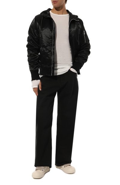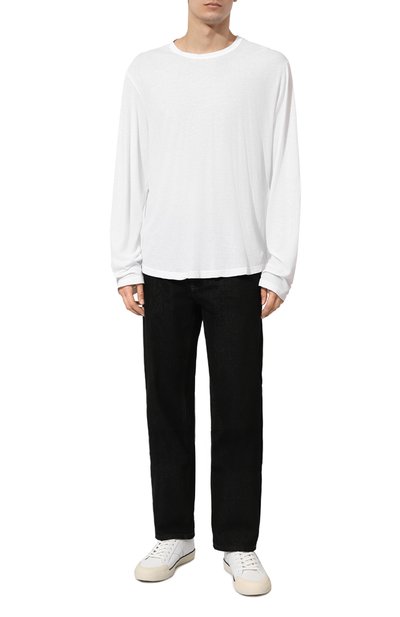 Лонгслив свободного кроя сшили из тонкого хлопкового джерси. Модель с широкой горловиной в рубчик и спущенной линией плеч удачно дополнит базовый гардероб.
