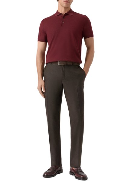 Поло прямого кроя сшили из тонкого шерстяного трикотажа. Изделие с манжетами и поясом в рубчик застегивается пуговицами. Лаконичная модель удачно впишется в повседневный образ.