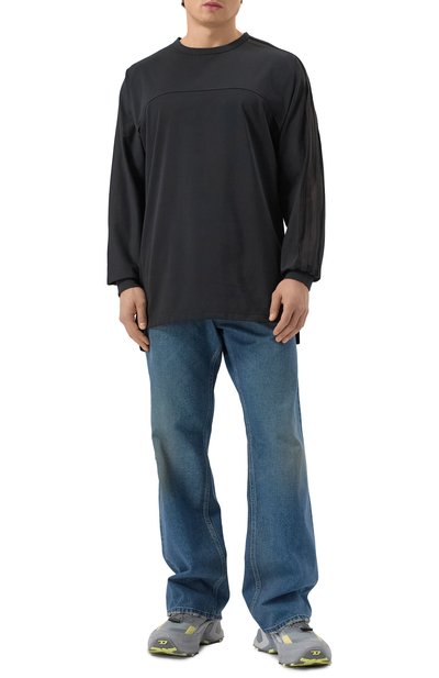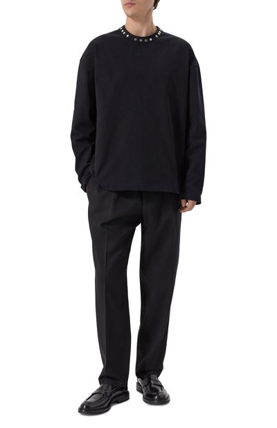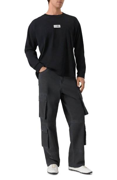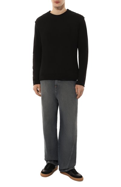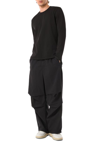 Лонгслив свободного кроя станет основой непринужденного повседневного образа. Для изготовления модели с широким кантом в рубчик на круглом вырезе использовали джерси из чистого хлопка.
