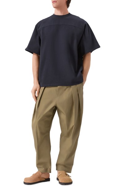 Свободную футболку с рифленой круглой горловиной выполнили из хлопкового джерси. Лаконичная модель одинаково хорошо сочетается и со светлой, и с темной одеждой.