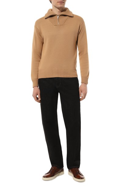 Кеды Alessio с внутренней отделкой из шерсти выполнили из гладкой кожи. Модель с брендированными нашивками на язычке и заднике ок расили в готовом виде, создав патину.