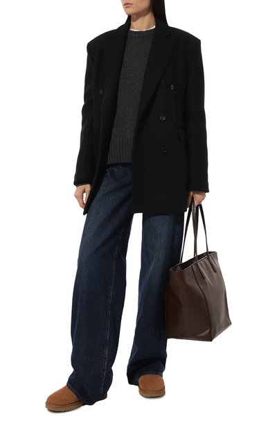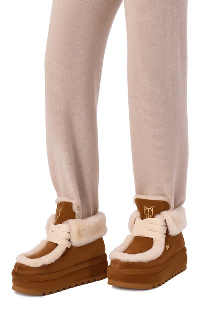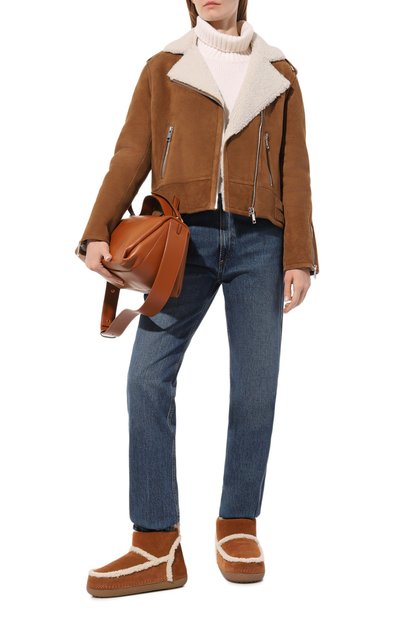 Слиперы Fami Mid, утепленные пушистой овчиной, выполнили из замши. Стеганую модель с подвижным ремешком на заднике и антибактериальной пробковой стелькой установили на широкую подошву из легкой резины.
