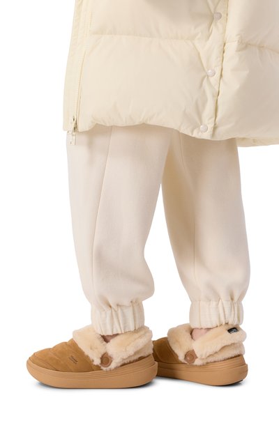 Полусап оги Fami Mid из замши установили на массивную, но легкую подошву с протектором. Модель с овчинным подкладом, отворачивающимся голенищем и эластичной кулиской с фиксатором украсили логотипом марки.